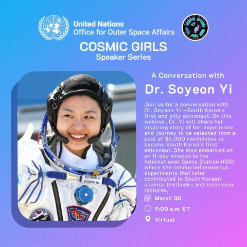 Dr. Yi will share her inspiring story at the United Nations Office for Outer Space Affairs (UNOOSA)